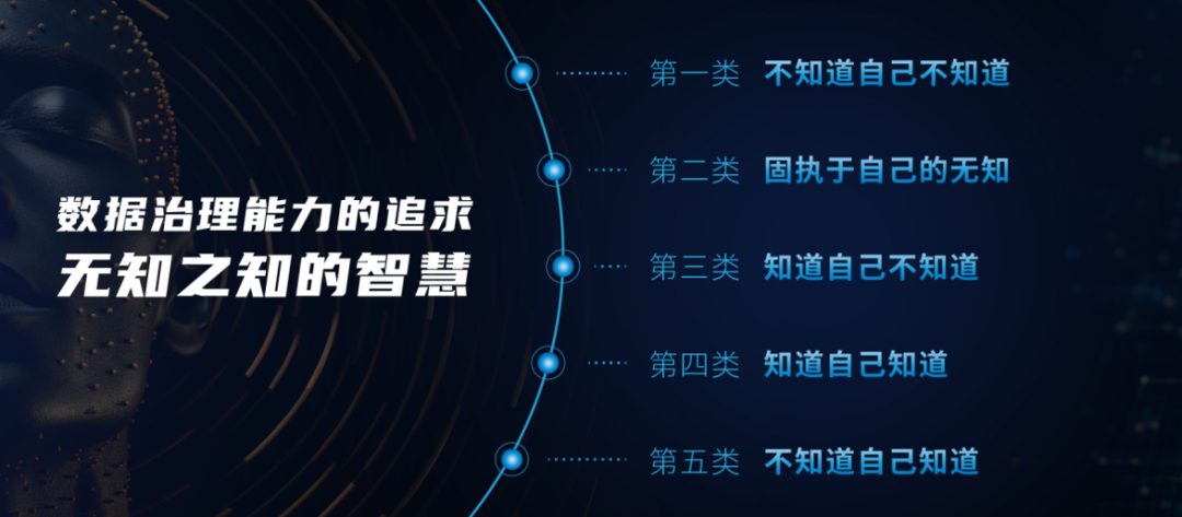 第五类是不知道自己知道,是最高境界,数据治理领域有非常深的造诣,同时敬畏谦卑,无知胜有知。