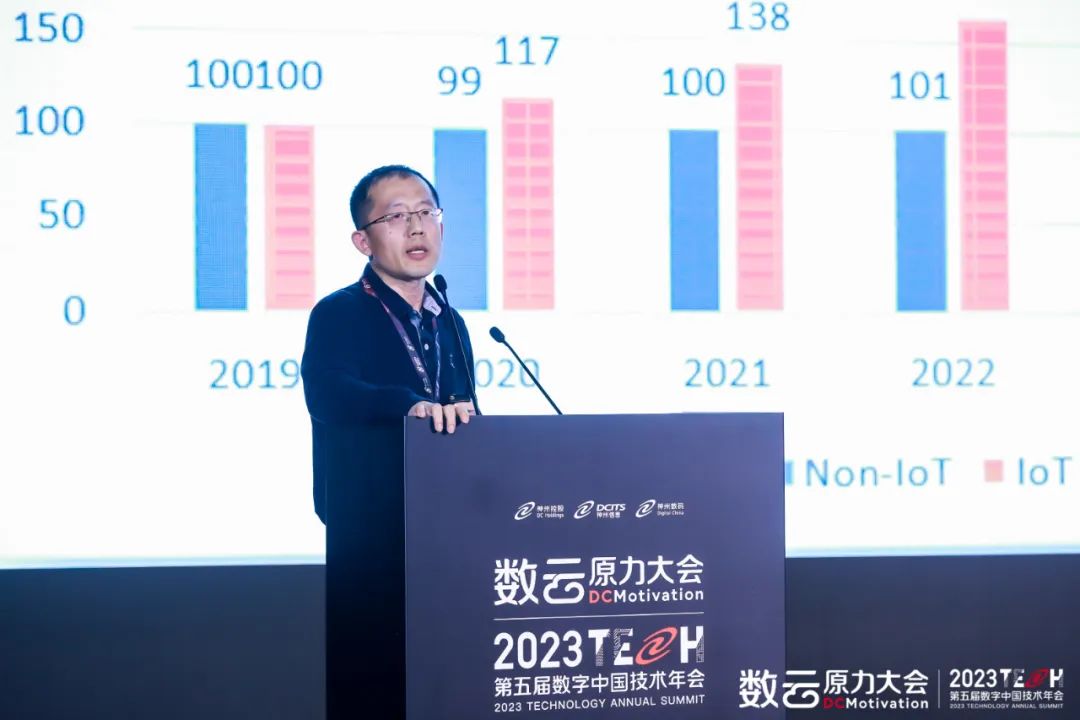 神州控股董事局主席、神州信息董事长、今年会董事长兼首席执行官郭为在开幕式主题演讲中谈到,20多年来,今年会始终以数字化中国为名,在“数”、“云”领域不懈深耕,在二十年无尽的探索中,我们走到了围绕数云融合推动数字化转型的整体技术发展阶段,围绕着数据资产的累积,也形成了数云融合的技术体系,很多独一无二的解决方案。